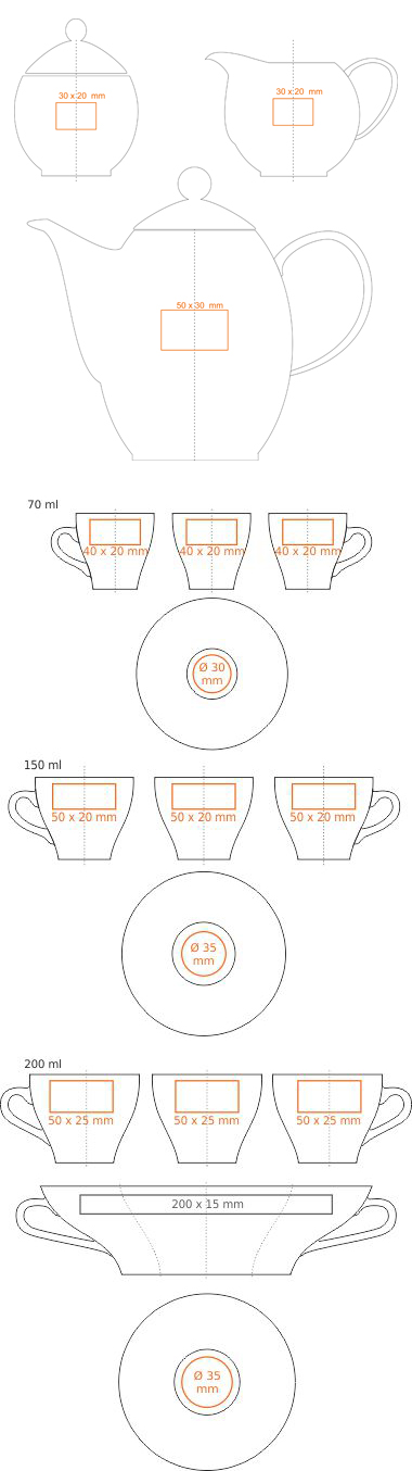 Dostępne zdobienia dodatkowe dla produktu VENEZIA COFFEE SET: * ( ml)