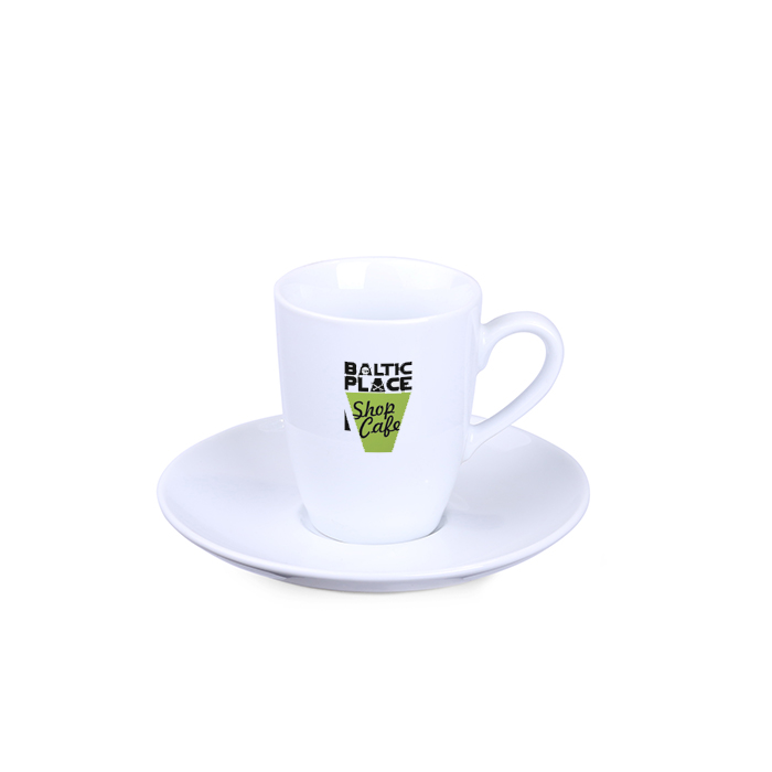Filiżanka reklamowa o klasycznych, obłych kształtach. Filiżanka dostępna w wersji espresso