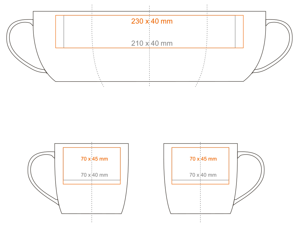 * W przypadku projektów wybiegających poza standardową powierzchnię nadruku prosimy o kontakt z działem handlowym.